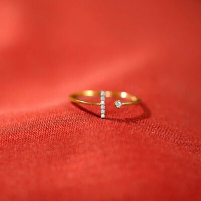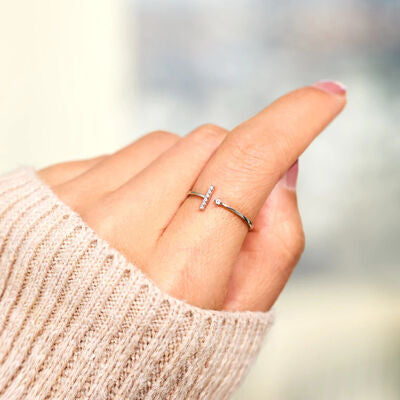 T Shape Inlaid Zircon 925 Sterling Silver Open Ring