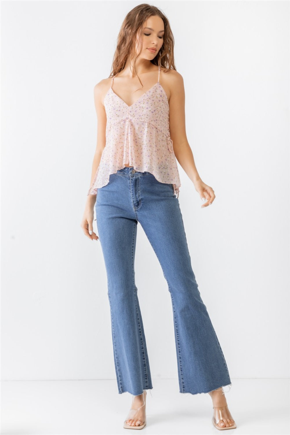 Tasha Apparel Floral Print V-Neck Criss-Cross Back Flare Cami