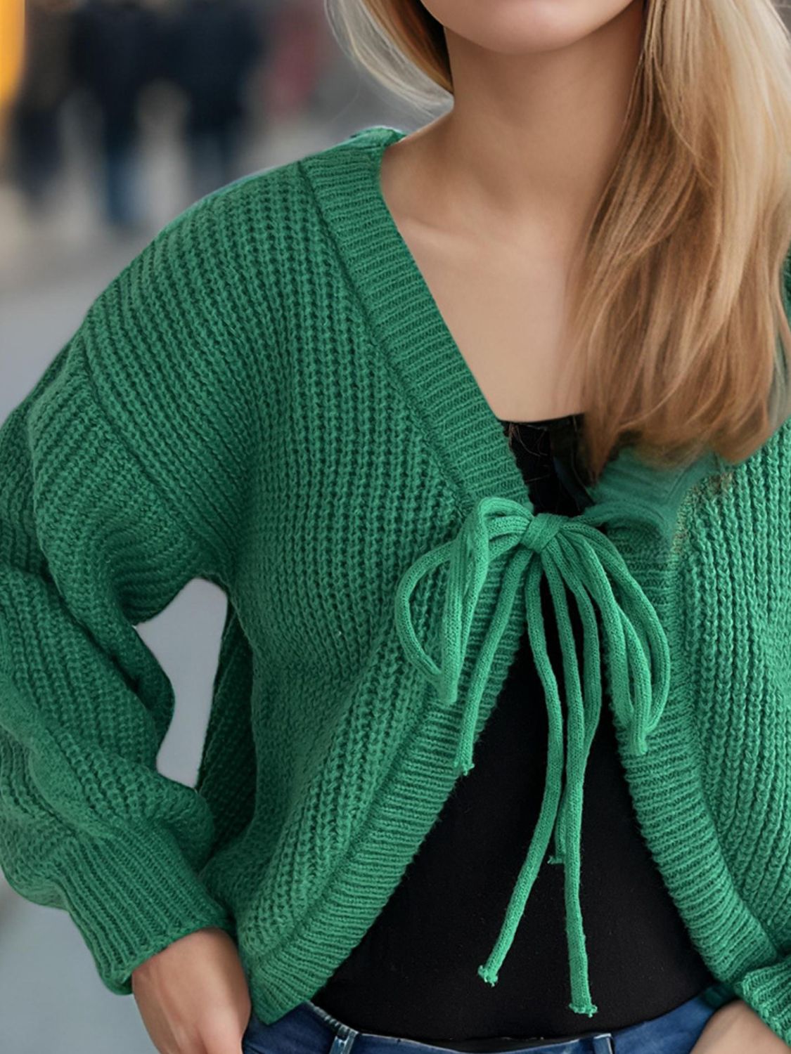 Tied Dropped Shoulder Long Sleeve Cardigan