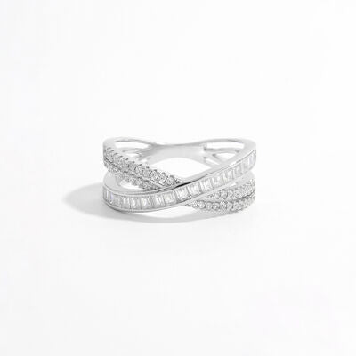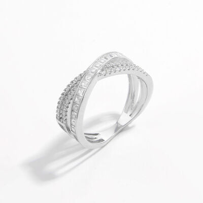 X Shape Inlaid Zircon 925 Sterling Silver Ring