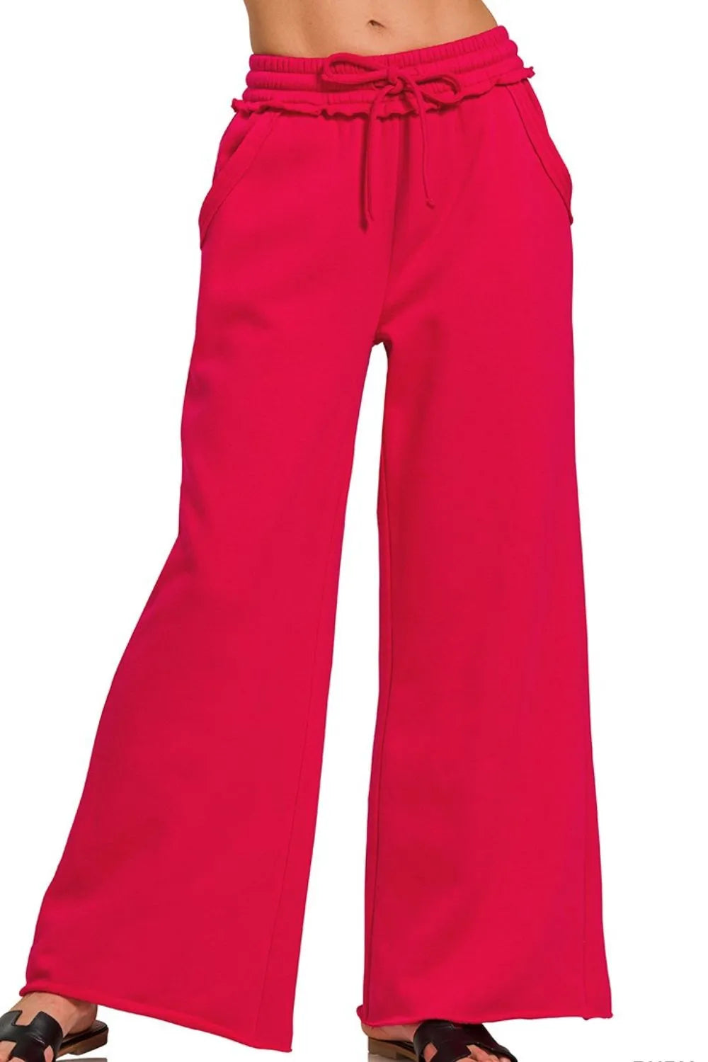 Zenana Fleece Exposed Seam Wide Leg Sweatpants